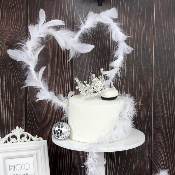 Que cắm lông trái tim được làm từ lông vũ mềm mịn, màu đen nổi bật, phù hợp cho những chiếc bánh sinh nhật mang concept đơn giản, sang trọng.