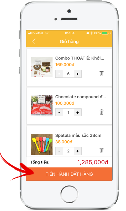 Nhấn vào Nút sản phẩm ở trung tâm App hoặc lướt danh mục sản phẩm ở bên trái bạn có thể dễ dàng tìm thấy tất cả các sản phẩm mình cần và đặt hàng chỉ với vài bước chạm.