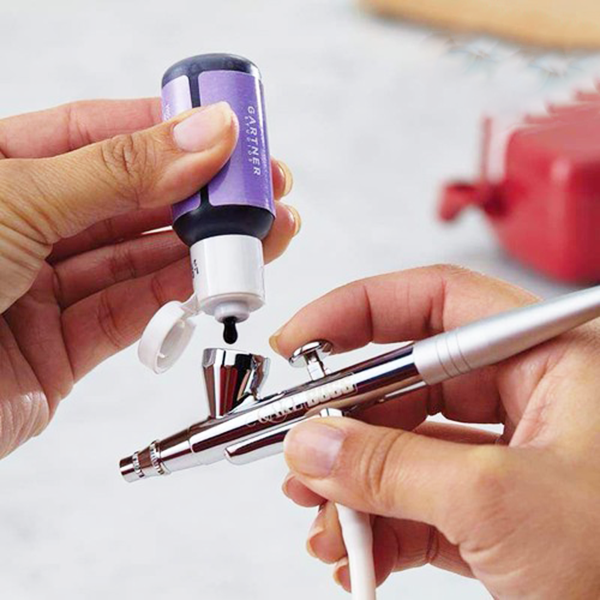 Bước 4: Cho một lượng nhỏ màu vào bình chứa màu trên vòi phun. Tùy vào sở thích, ý muốn mà các bạn chọn màu phù hợp.