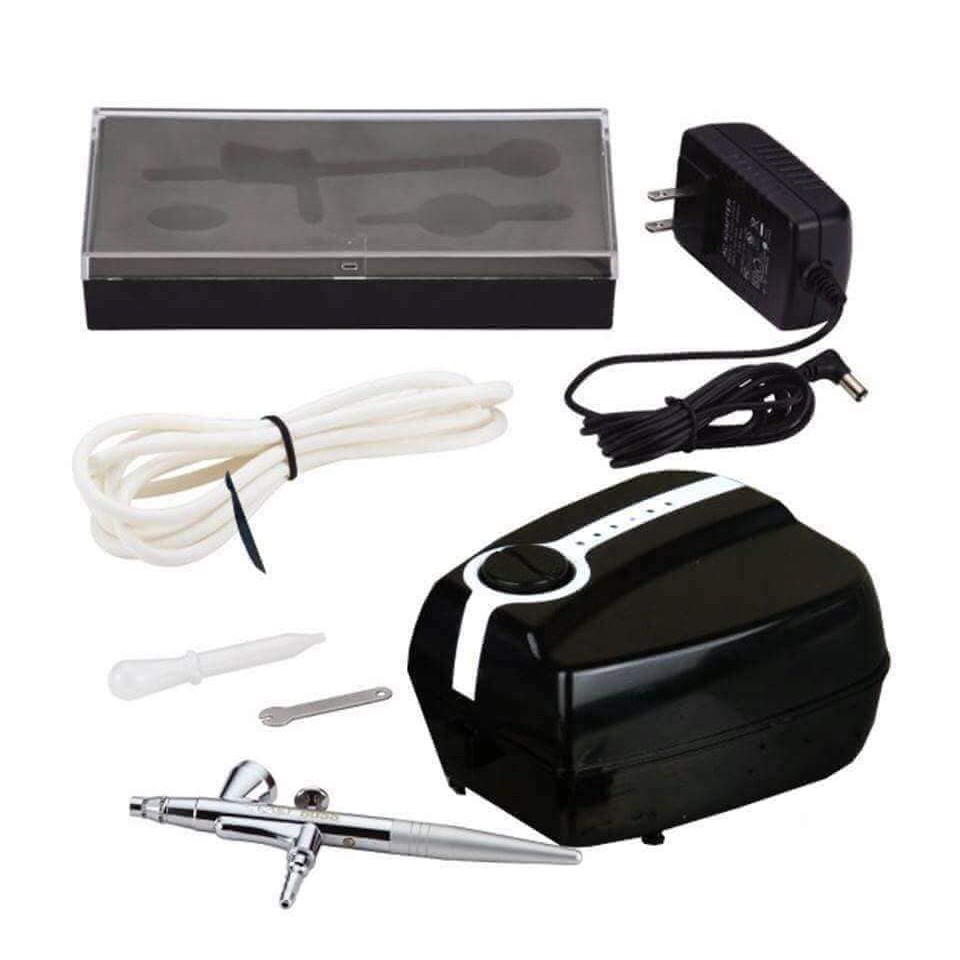 Máy phun màu thực phẩm kích thước là 13.6 x 10.2 x 6.6 (cm) gồm 1 đầu phun nhỏ tương tự chiếc bút bi, 1 vòi chuyền màu và 1 bình chứa màu, 1 bột chuyển A/C và 1 dụng cụ đặc biệt để giữ cho vòi phun sạch sẽ. Bộ nén 18 PSI nhỏ gọn cùng 3 cấp điều chỉnh từ thấp đến cao phù hợp với cách trang trí khác nhau.