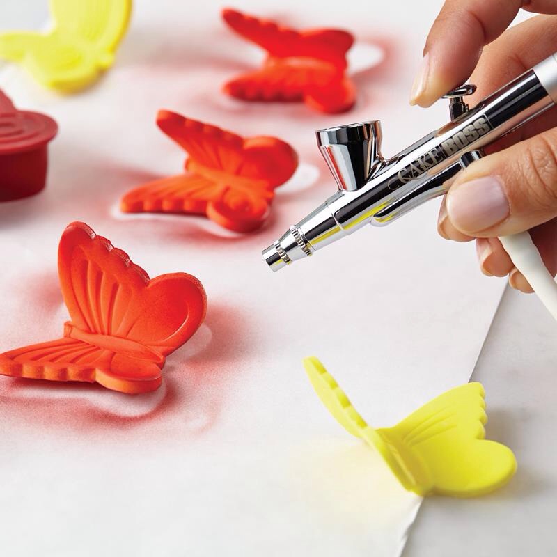 Máy phun màu thực phẩm là sản phẩm chuyên dụng được ứng dụng vào việc trang trí bánh bằng hệ thống đầu phun nhỏ, phun tia nhẹ nhàng đủ để phủ màu lên bánh mà không làm xước mặt bánh.
