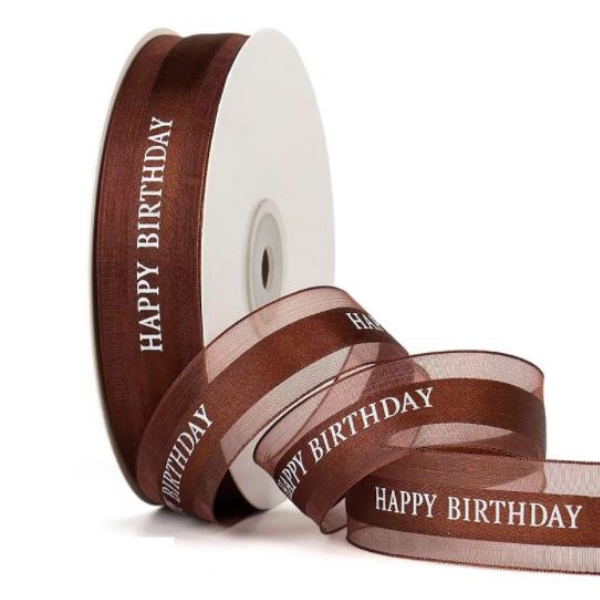 Ruy băng lụa HPBD được làm hoàn toàn từ chất liệu lụa mềm mịn, mỏng nhẹ cùng tone màu nâu nổi bật, phù hợp để làm phụ kiện trang trí bánh sinh nhật, giúp chiếc bánh của bạn thêm bắt mắt