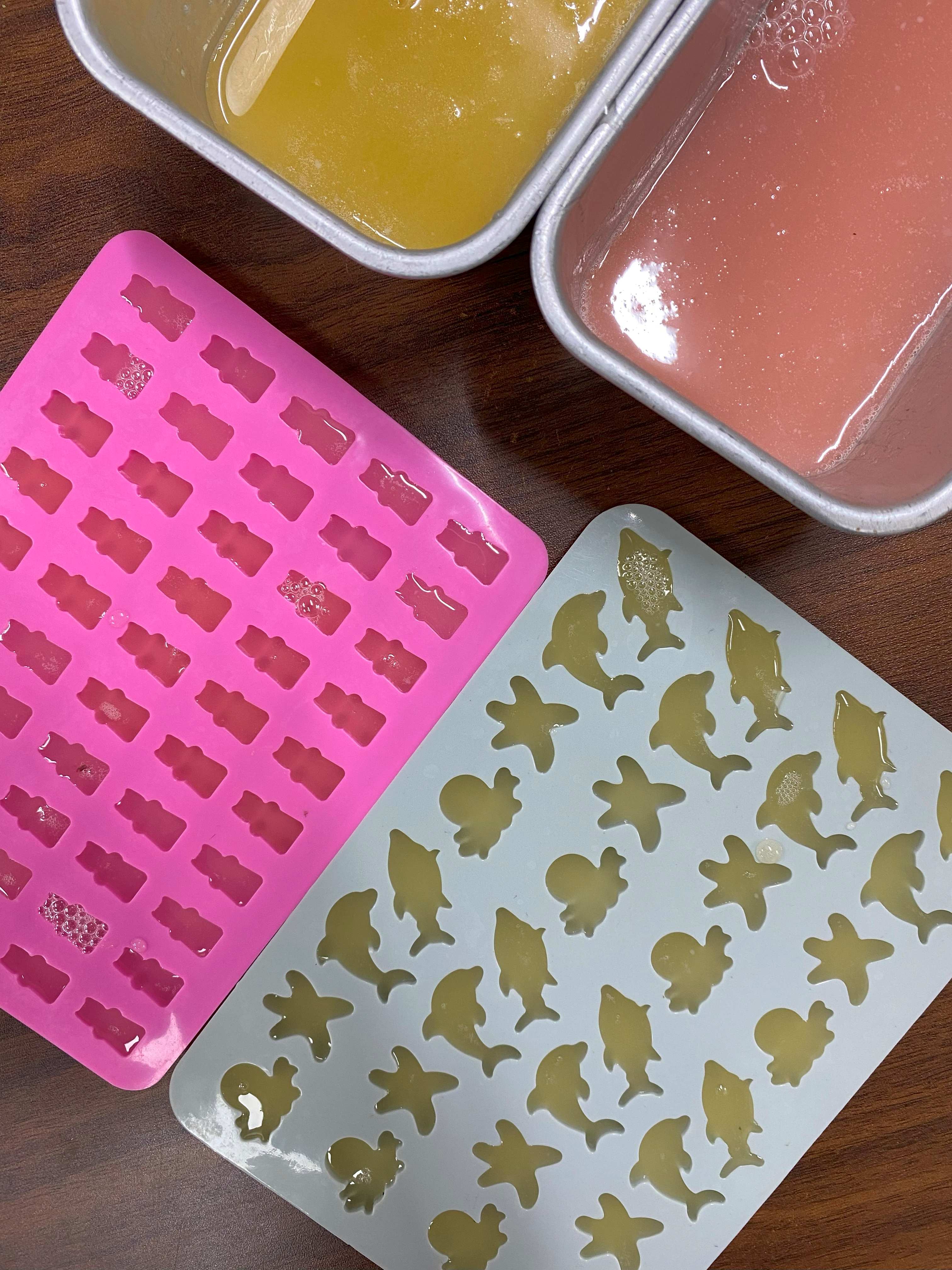 6. Đổ ra khuôn silicon , chờ se mặt thì mang vào tủ đông 15 phút lấy kẹo .