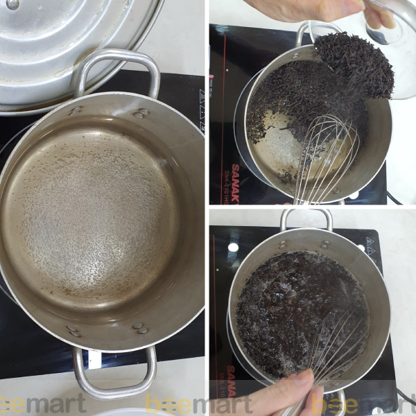 - Đun sôi 1 lít nước, bỏ 25g trà vào ủ 15 phút, sau đó lọc bỏ bã trà lấy nước cốt.