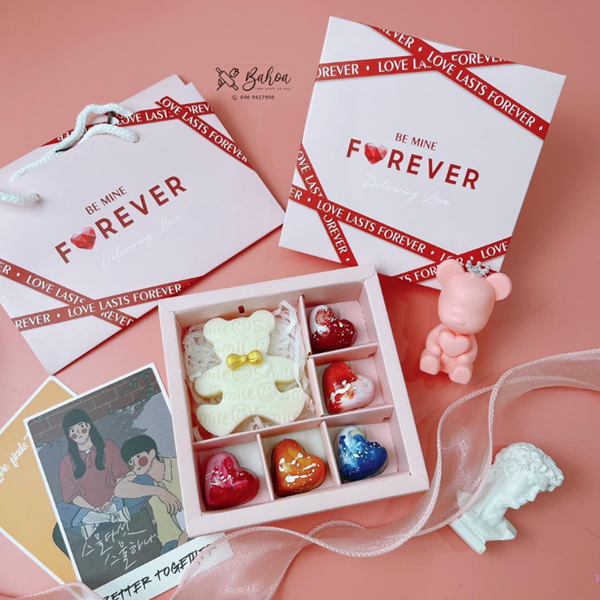 - Bộ sản phẩm bao gồm 1 túi đựng socola và 1 hộp đựng socola kèm thiệp, là sự kết hợp giữa hai tông màu trắng và đỏ cùng những hoạ tiết thú vị, tuy đơn giản nhưng vô cùng nổi bật và thu hút.