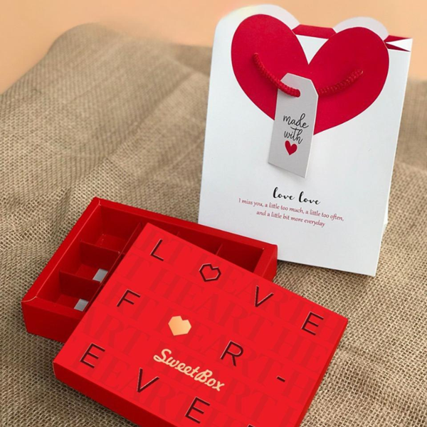- Set túi hộp đựng socola Sweet Box 12 viên có dạng gấp.