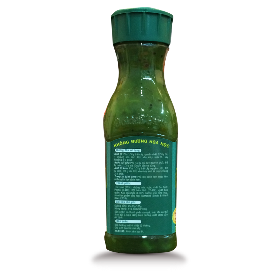 - Thành phần: Trái kiwi (50%), đường mía, siro bắp, nước, hương kiwi tổng hợp,....