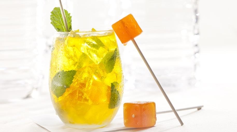 Có thể dùng lá bạc hà cùng 1 quả ớt và 1 miếng xoài đã cắt gọt để trang trí cho đồ uống
