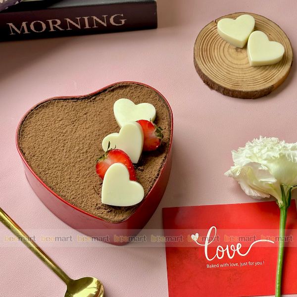 Thẩm mỹ: Hộp thiếc hình trái tim sang chảnh, dễ dàng vận chuyển đi xa mà không lo hỏng dáng bánh.