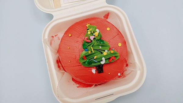 Bento bánh kem hình trang trí cây thông với cốt bánh thơm hương vani mềm ẩm, kết hợp cùng lớp kem béo ngậy ngọt nhẹ màu đỏ bên trên là hình trang trí cây thông xanh biểu tượng mùa giáng sinh sẽ trở thành món quà không thể thiếu trong đêm giáng sinh