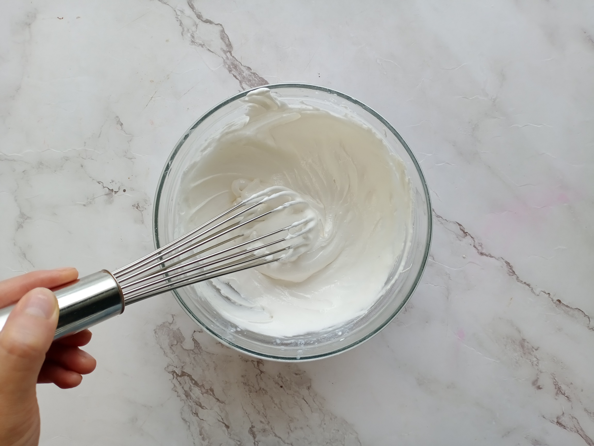 - Trộn 30g bột whipping với 30ml sữa lạnh và một bát khác rồi đánh bông lên đến khi kem đặc.