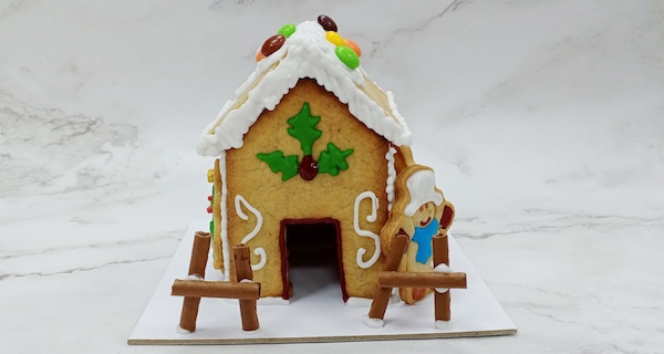 Ngôi nhà được làm chủ yếu bằng bánh quy gừng, gắn với nhau bởi lớp đường icing trắng như những bông tuyết, ngôi nhà có cây, hoa, hàng rào, ống khói,....xung quanh, tạo nên một khung cảnh ấm cúng như trong truyện cổ tích.