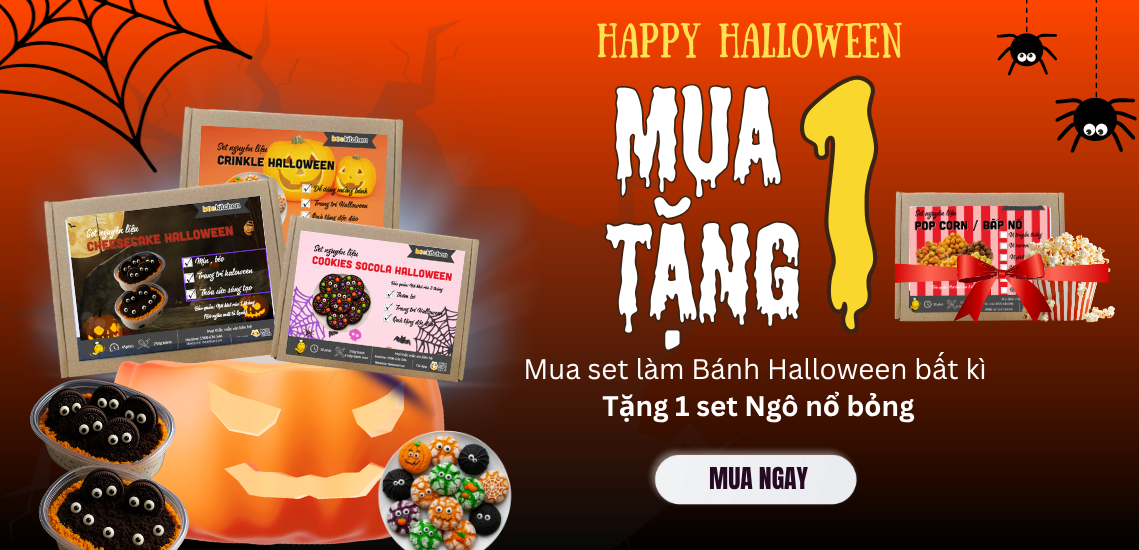 Khi mua Set làm bánh phiên bản Halloween được TẶNG ngày 1 Set làm Ngô nổ bỏng (Popcorn) vị truyền thống (giá bán 30K)
