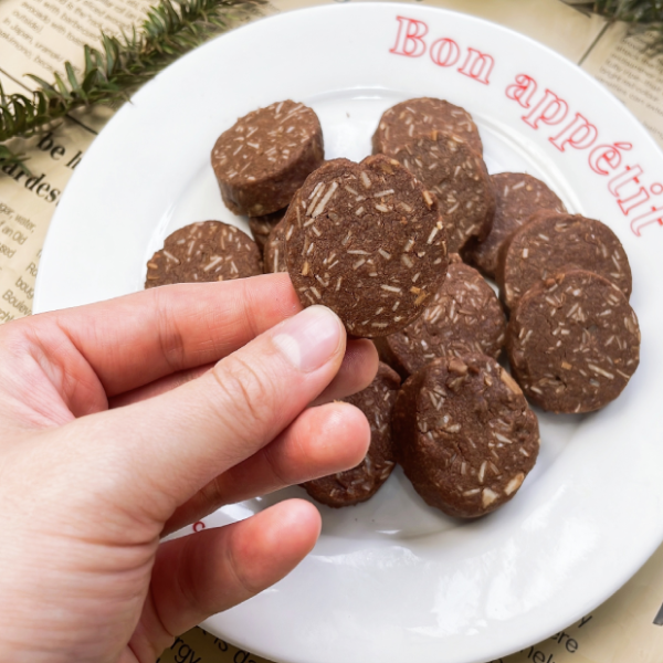 Những chiếc bánh quy socola thơm bơ, đậm hương socola kết hợp cùng vị bùi béo của dừa sợi.