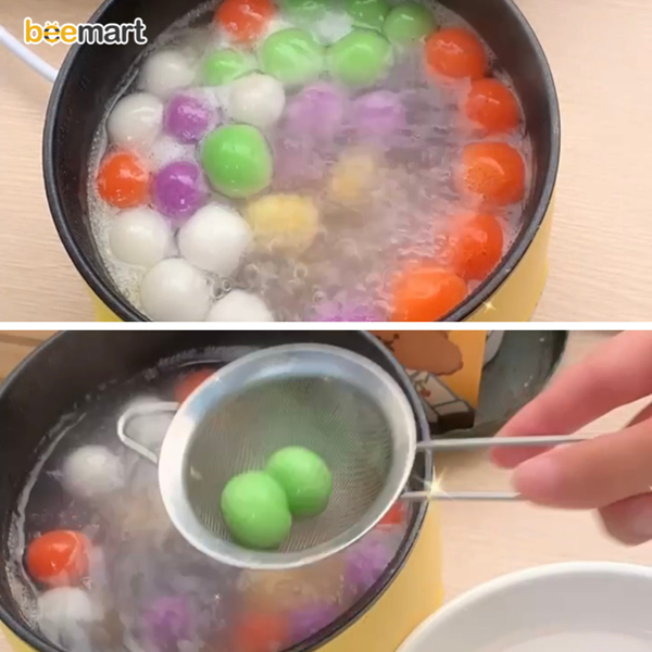 - Khi nước đã sôi hẳn mới thả từng viên bánh trôi vào luộc
