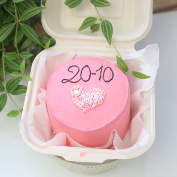 Bento hồng đậm trái tim với cốt bánh thơm hương vani mềm ẩm, kết hợp cùng lớp kem béo ngậy ngọt nhẹ màu hồng xinh xắn bên trên là hiinhf trái tim bắt mắt và đương nhiên không thể thiếu ngày đặc biệt 20/10 rùi.