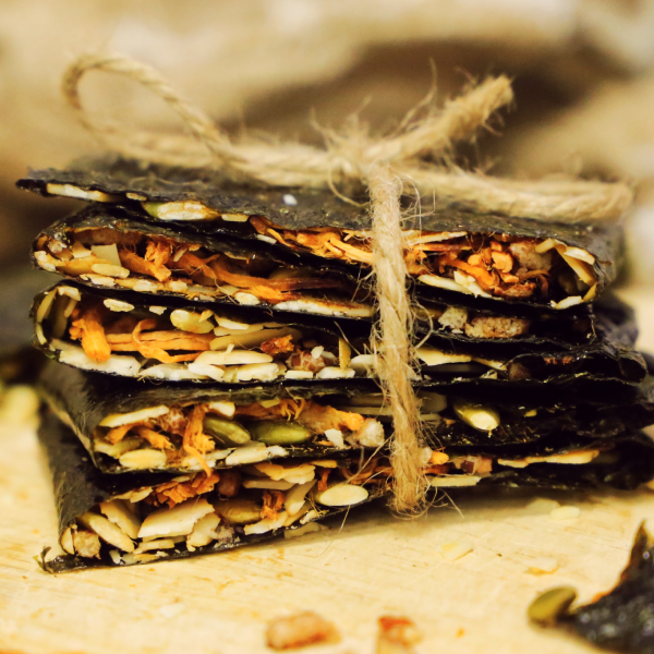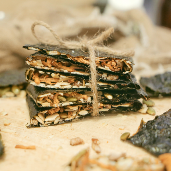 Snack hạt rong biển với lớp vỏ giòn tan thơm mùi dầu mè kết hợp với phần nhân hạt bùi béo vô cùng đưa miệng.