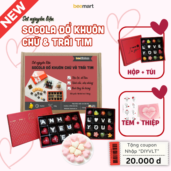 Freeship đơn đầu tiên khi nhập mã "FREEMOI"Thay lời muốn nói, Set tự làm Socola đổ khuôn chữ có thể giúp bạn gửi gắm những lời nói yêu thương, vừa tinh tế mà lại nhẹ nhàng.