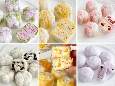 Bánh dẻo lạnh: Vỏ làm từ bột gạo tẻ theo công thức Quảng Đông chỉ cần pha với nước sôi. Bột trắng dẻo, mềm mịn. Vỏ thường được mix nhiều màu sắc: matcha, socola, dâu…