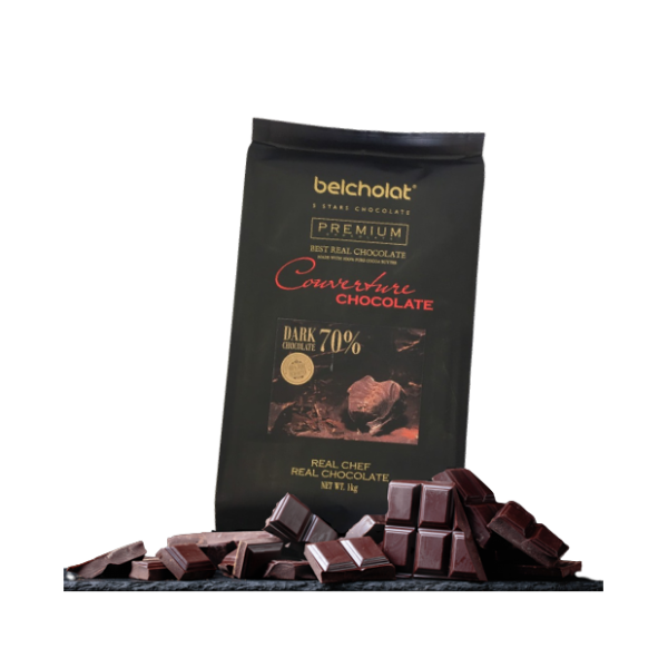 Socola Đen 70% Couverture Belcholat được nhập khẩu trực tiếp từ Bỉ , làm từ 100% bơ cacao tinh khiết mang đậm mùi thơm của cacao.