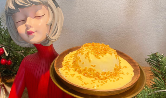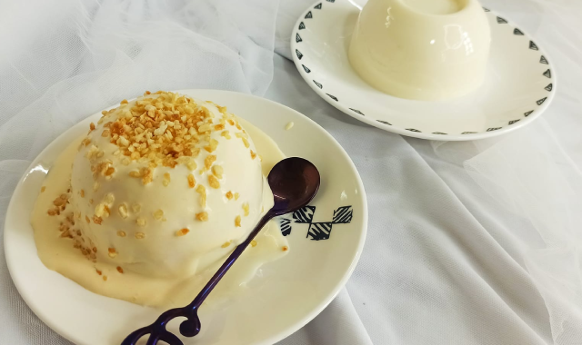 Sau khi tàu hũ đã đông lại, nhẹ nhàng gỡ khuôn ra và cho vào đĩa, rưới thêm phần sốt kem trứng lên, topping thêm vụn dừa khô và thưởng thức thôi!