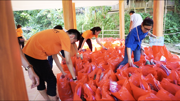 Xếp và kiểm tra lại quà trước khi phát cho các em