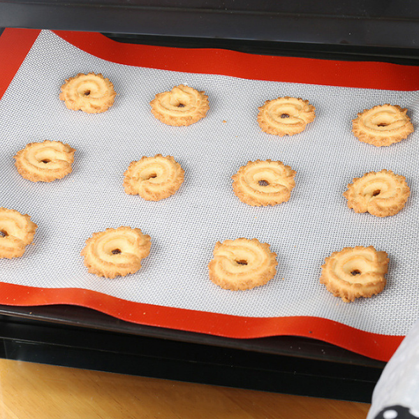 - Được làm từ silicon và sợ thủy tinh nên có độ bền cao, khả năng chịu nhiệt tốt, khoảng chịu nhiệt từ -40°C đến 230°C, rất thích hợp cho lò nướng, không gây biến chất đối với thực phẩm cũng như an toàn cho sức khỏe người sử dụng. Sản phẩm này có diện tích lớn nên có thể tạo ra nhiều bánh cùng một mẻ.