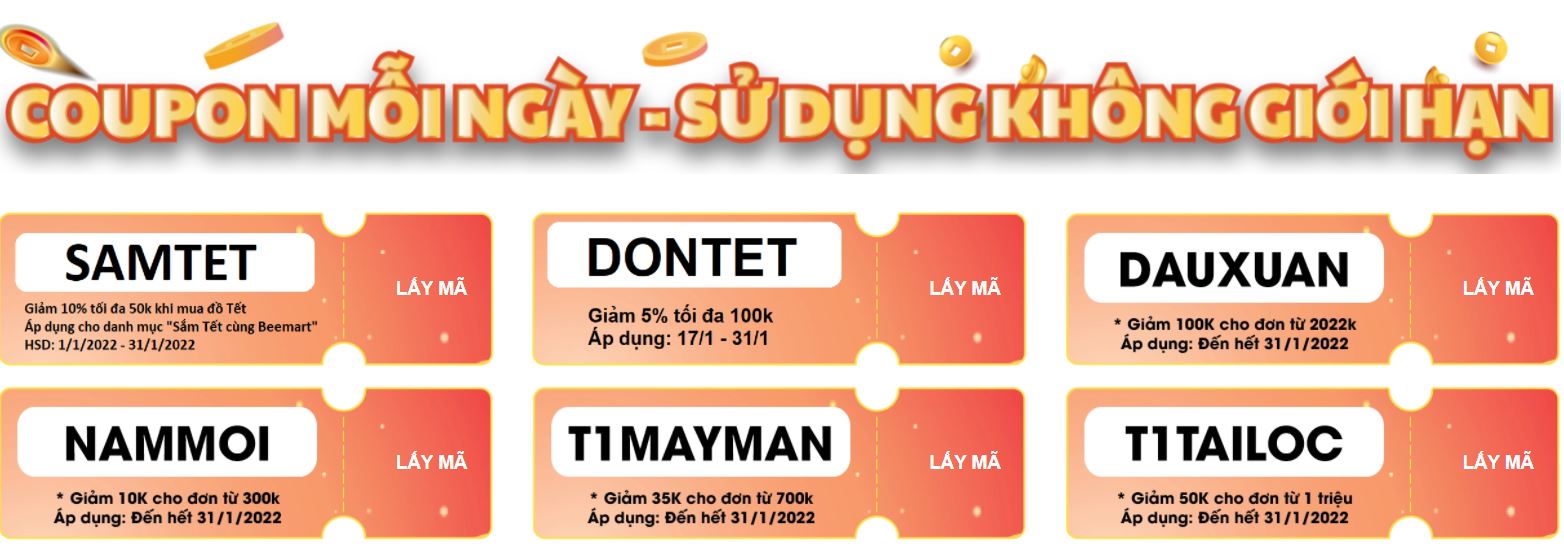 Ngoài giao hàng 2h, tại Beemart còn rất nhiều Voucher ƯU ĐÃI TRONG DỊP TẾT này nữa đấy nhé!!