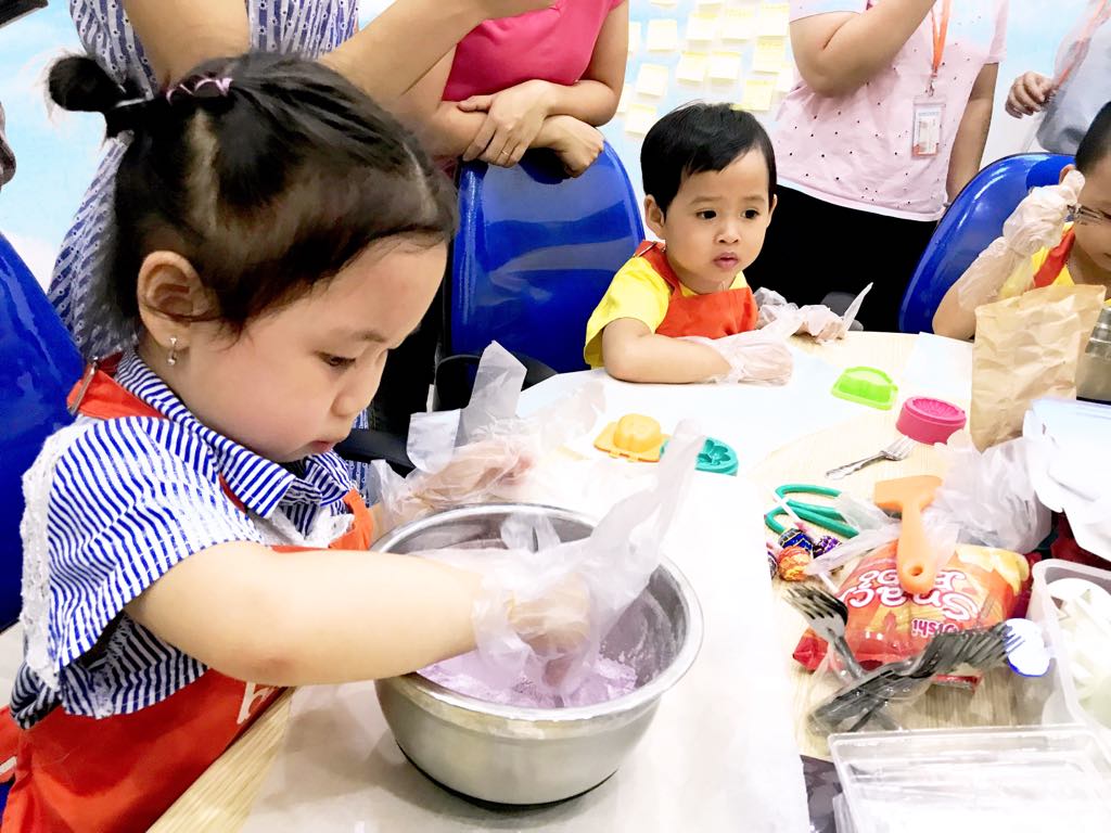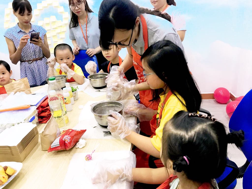 Các Siêu anh hùng nhí đang được cô giáo Bếp Nhà Bee hướng dẫn tạo hình bánh <3