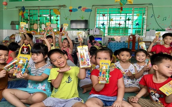 Các bé vui vẻ nhận quà ngày Tết Thiếu nhi