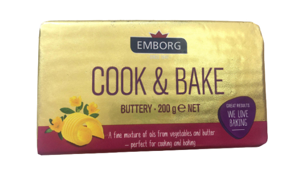 Bơ nhạt Cook & Bake Emborg (80%) 200gr - chuyên dùng trong nấu ăn và làm bánh. Với độ béo 80% có thành phần dầu bơ kết hợp với dầu thực vật tinh luyện, tạo nên cấu trúc tuyệt vời lý tưởng cho việc nấu nướng và làm bánh có được hương vị món ăn thơm ngon hấp dẫn nhất.