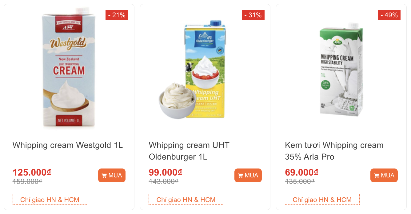 1. Ưu đãi dòng Kem tươi làm bánh chỉ từ 69.000đ/ hộp 1L