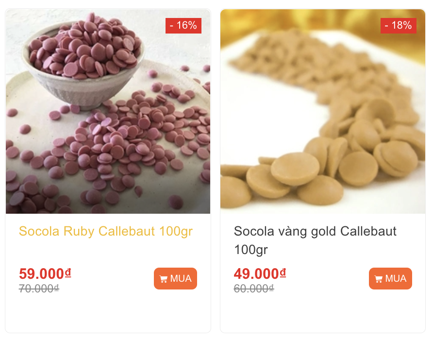 2. Ưu đãi dòng Socola thượng hạng hiệu Callebaut chỉ từ 49.000đ/ gói chia nhỏ 100gr tiện dụng