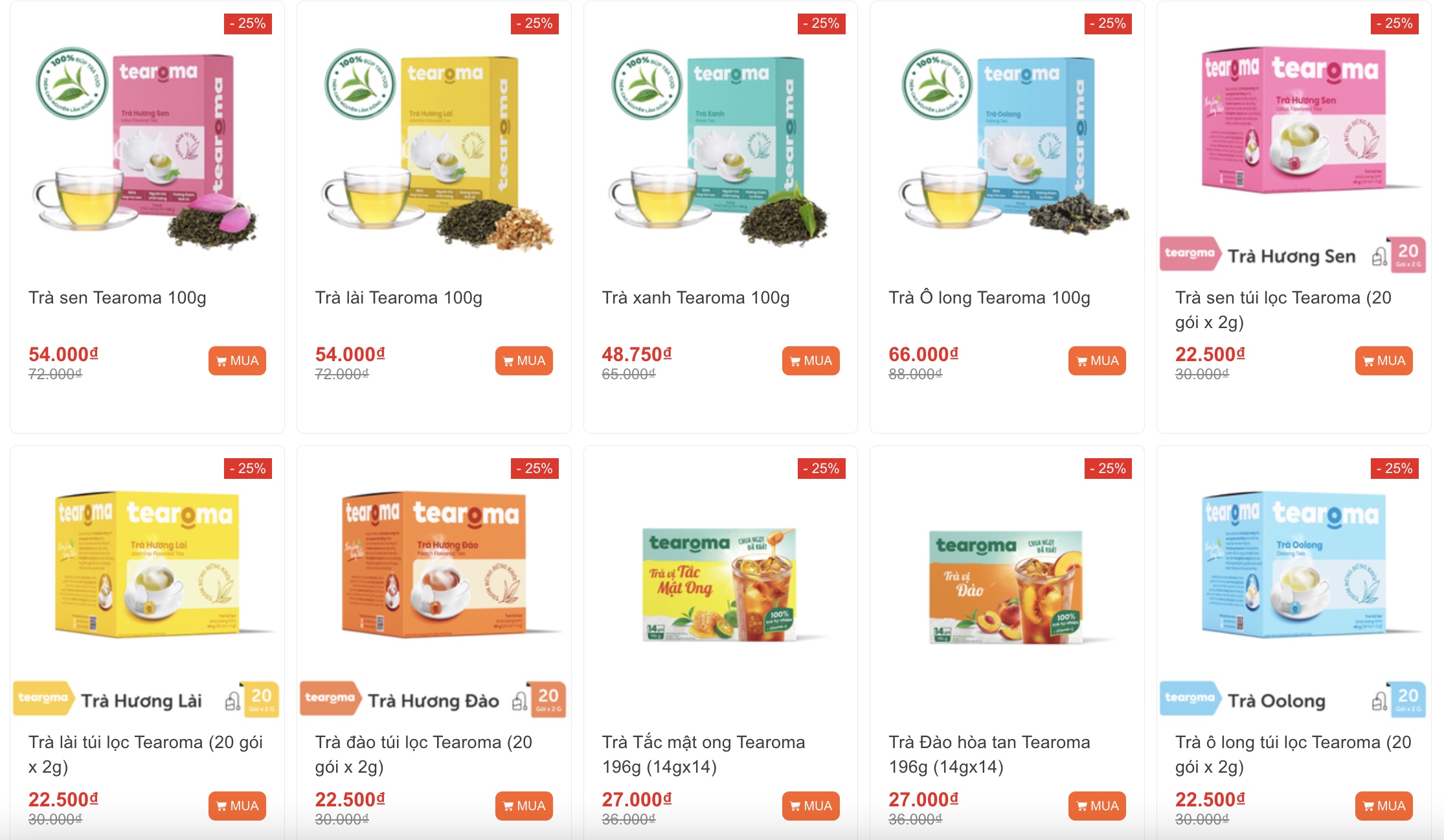 4. Các dòng trà hiệu Tearoma ưu đãi 25%