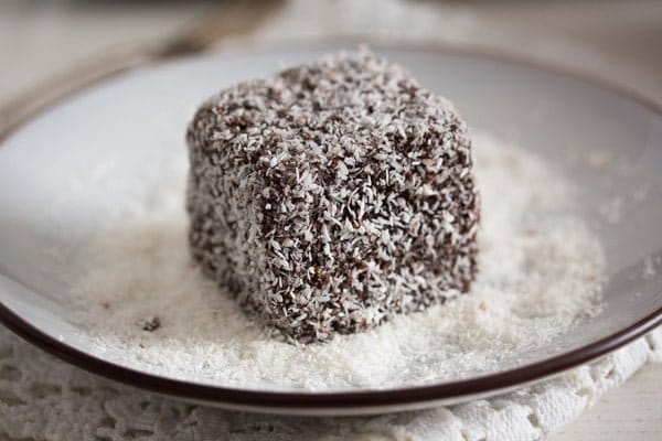 3. Bánh Lamington. Bạn cắt phần rìa thành những khối vuông nhỏ, nhúng chúng vào sốt socola và dừa nạo, vậy là bạn đã có món ăn truyền thống và niềm tự hào ẩm thực bánh ngọt nước Úc