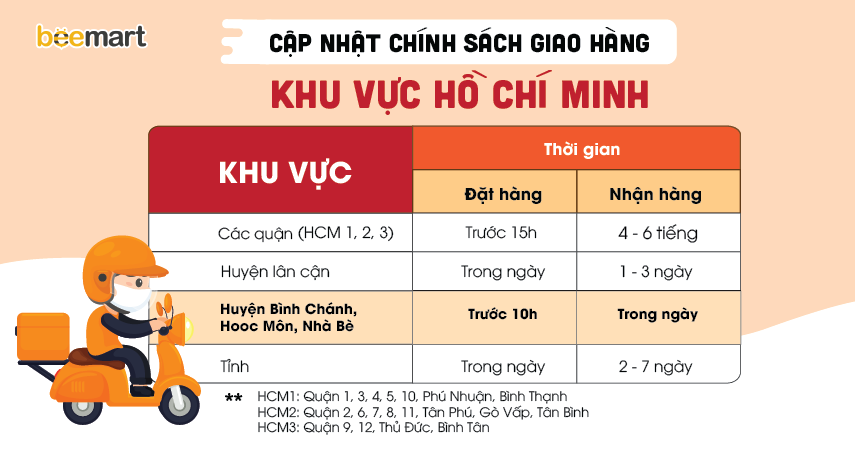 Thời gian giao hàng trên áp dụng cho toàn bộ các quận nội thành và Thành phố Thủ Đức