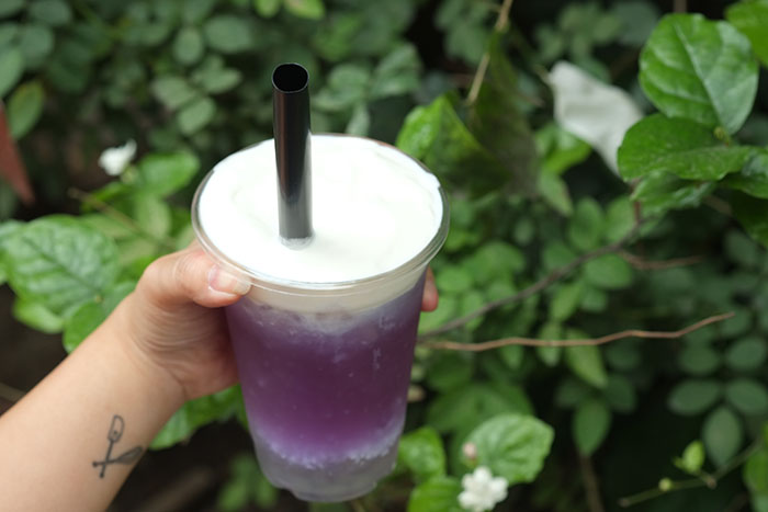 Trà hoa đậu biếc Macchiato được pha từ COMBO
