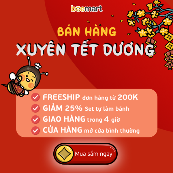 Để phục vụ nhu cầu làm bánh chiêu đãi cả gia đình trong dịp Tết dương 2024, Beemart mở cửa BÁN HÀNG XUYÊN TẾT phục vụ hết mình cùng quý khách hàng.