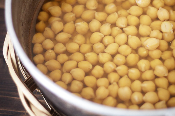 1. Ngâm đậu gà từ đêm hôm trước trong một tô lớn với nước lạnh và đậy nắp cho đến khi đậu nở gấp đôi.