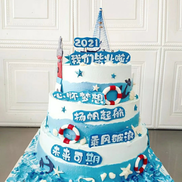 Thuyền buồm trang trí bánh chim hải âu màu trắng có màu xanh và trắng làm chủ đạo, gợi nên màu xanh mát của biển cả, dùng để trang trí bánh sinh nhật cho các em bé