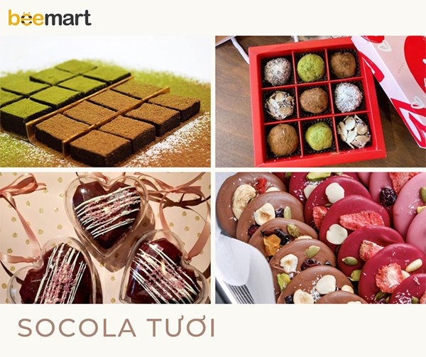 Là dòng socola được làm từ socola nguyên chất kết hợp với kem tươi tạo nên viên socola với hương vị thơm ngon, mềm tan trong miệng khi ăn. Dòng socola tươi phổ biến và được yêu thích nhất hiện nay là socola truffle và socola nama. Món quà này phù hợp với các cặp đôi vì socola được coi là biểu tượng của tình yêu và sự lãng mạn. Bạn có thể lựa chọn hương vị truyền thống từ cacao, trà xanh hoặc socola tươi được mix kèm với các loại hạt sấy, trái cây để tạo sự mới mẻ và ngon miệng hơn. Ngoài ra, các dòng socola mới như bonbons, socola mix hạt, socola bomb cũng được lựa chọn với các bạn thích sự biến tấu và nhiều hương vị.