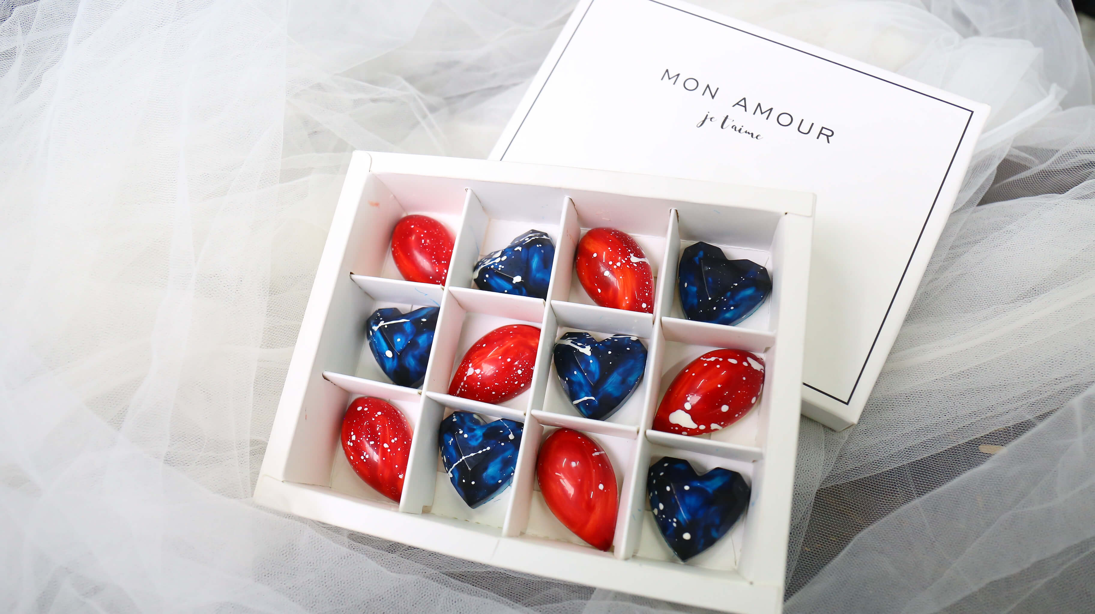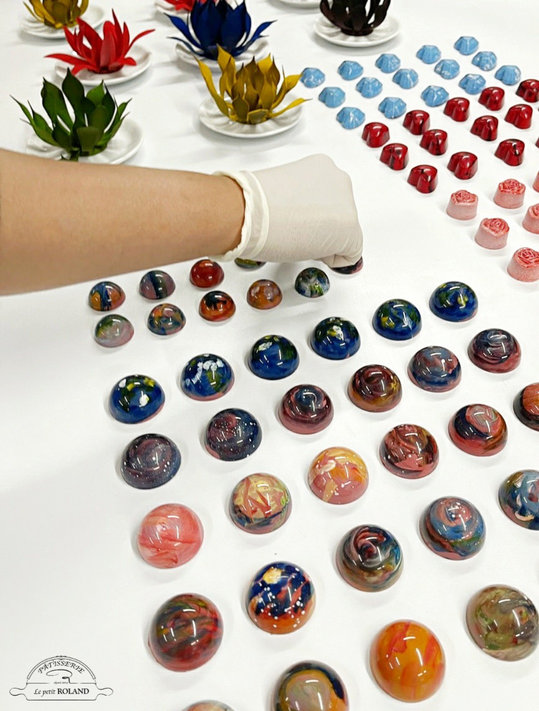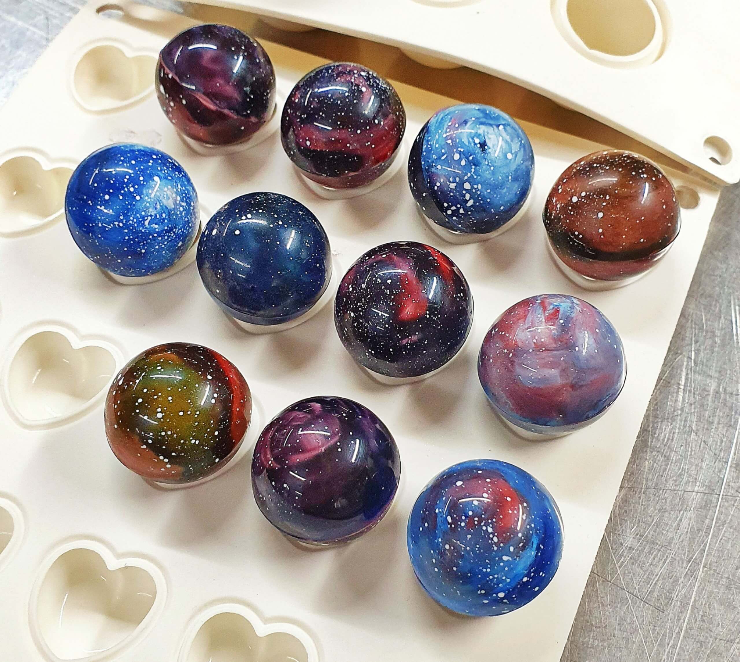 Chocolate bonbons nổi tiếng với những dải màu sắc galaxy xung quanh viên socola, có thể là hình địa cầu, những bông hoa hay đại dương xanh thẳm. Loại socola này quả thực là những tác phẩm nghệ thuật thu nhỏ của người làm bếp.