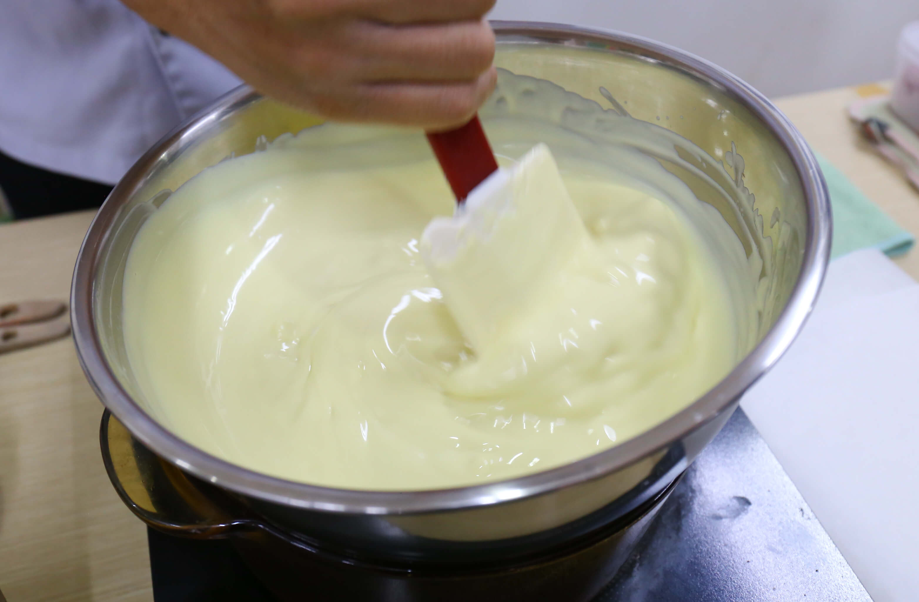Các bạn pha màu đến nhiệt độ 26 độ C rồi bắt đầu tiến thành phết màu vào khuôn.