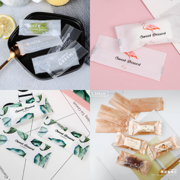 Giấy gói kẹo Nougat xoắn là loại túi bạn chỉ việc xoắn kín hai đầu lại.