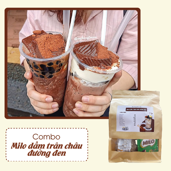 Chuẩn bị đầy đủ nguyên liệu với COMBO milo dầm trân châu đường đen tại Beemart. Combo đã bao gồm đầy đủ nguyên liệu cùng hướng dẫn cách làm chi tiết giúp các bạn làm thành công món ăn vặt mùa hè này ngay lần đầu tiên. Vị thơm thơm của cacao hòa cùng các loại topping như trân châu, pudding chắc chắn sẽ cho bạn thứ thức uống thơm ngon nhất.