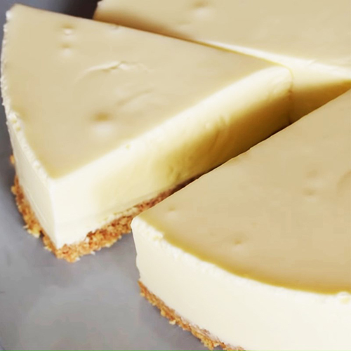 Thành phần không thể thiếu của cheesecake là cream cheese và kem tươi, có thể thêm lớp bánh quy nghiền vụn trộn với bơ đun chảy để làm đế bánh và cũng là làm tăng độ ngon cho cheesecake. Mùi vị đặc trưng của cheesecake là vị chua dịu của cream cheese kết hợp với vị beo béo của kem tươi tạo nên lớp kem bánh cực kì ngon miệng. Cheesecake không cần đến lò nướng, làm siêu nhanh nên cực kì thích hợp với những người bận rộn mà yêu thích bánh trái.