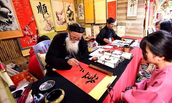 Cứ mỗi khi xuân sang, những ông đồ lại bày nghiên bút, giấy bản nhuộm điều tại Văn Miếu cổ kính để chờ người ghé xin chữ. Xin chữ đầu năm là phong tục, nét đẹp văn hóa truyền thống từ lâu đời của người Việt với mong ước một năm mới an lành, hạnh phúc.