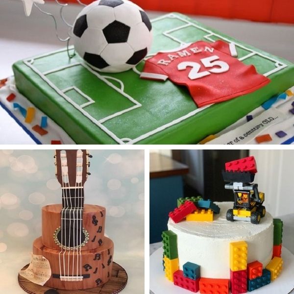 Mẫu bánh sinh nhật cho bé trai dựa trên sở thích về thể thao, âm nhạc hay lego