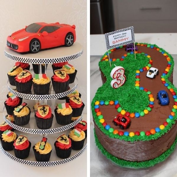 Mẫu bánh sinh nhật cho bé trai 3 tuổi mô hình đường đua oto và bé trai yêu thích Ferrari