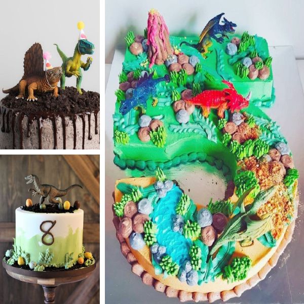 Khủng long cũng là một trong những sinh vật được nhiều em bé yêu thích, đặc biệt những bé trai có cá tính mạnh mẽ. Và đây cũng là chủ đề cho bé mẹ thỏa sức lựa chọn các kiểu bánh sinh nhật cho bé trai. Các tiệm bánh đã sáng tạo ra nhiều kiểu bánh, mẫu bánh trang trí những chú khủng long dễ thương.